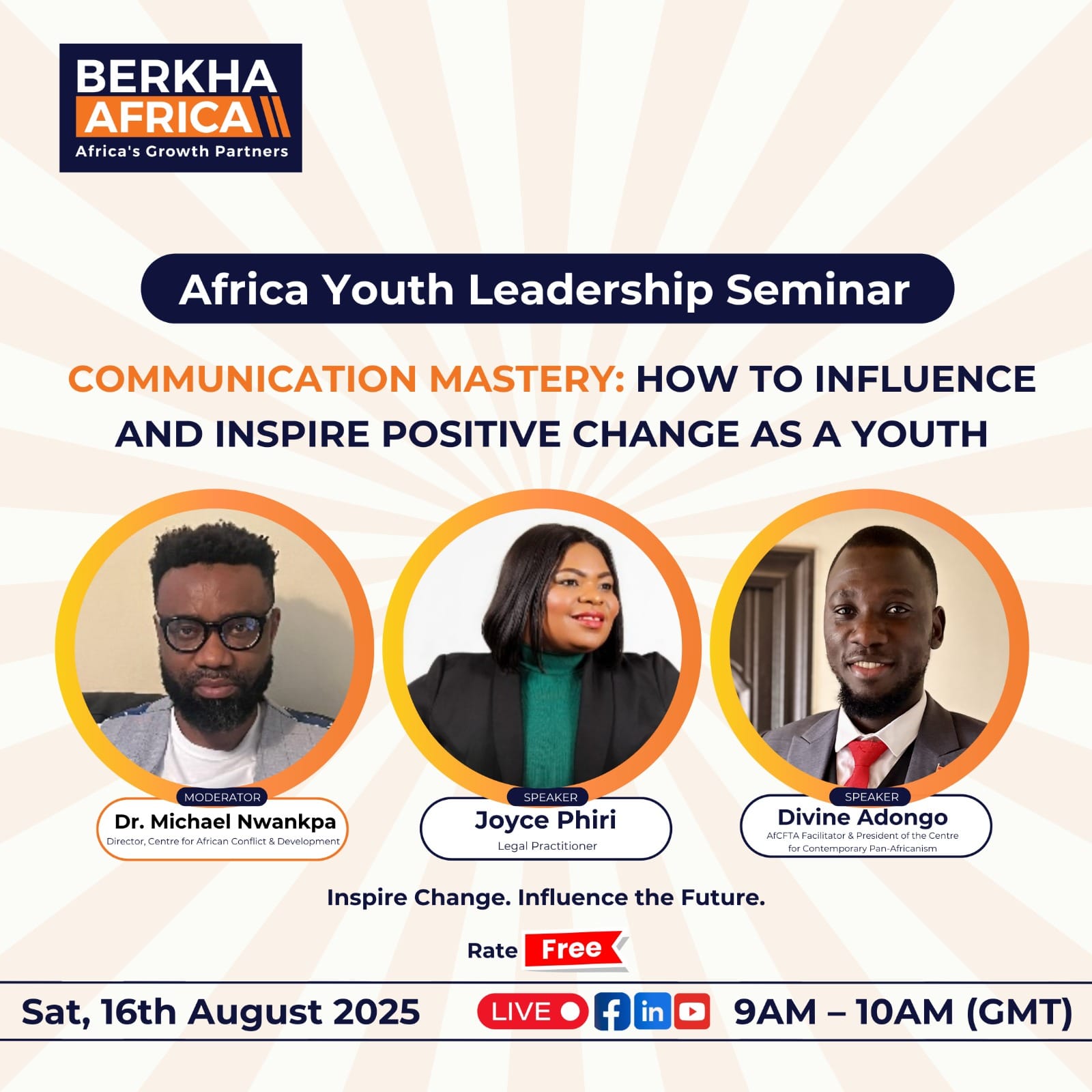 Join us for an empowering online event designed to equip young leaders with the tools, insights, and confidence to create meaningful change in their communities. This interactive session will explore the role of youth in driving social transformation, building influence, and inspiring others through leadership.